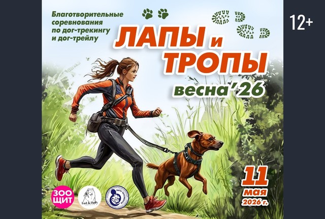 Мы открываем регистрацию на благотворительные соревнования по дог-трекингу и дог-трейлу «Лапы и тропы. Весна 2026». Дистанция ориентировочно 5 км.