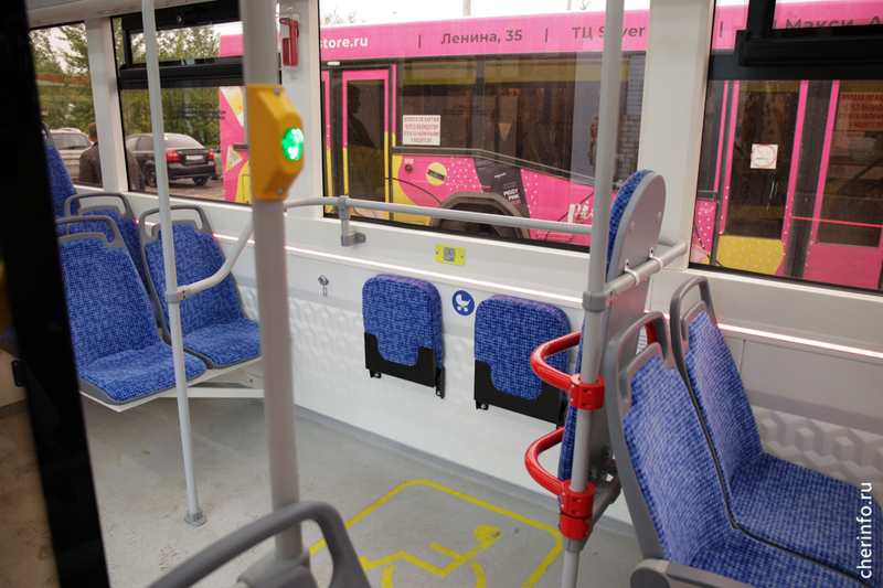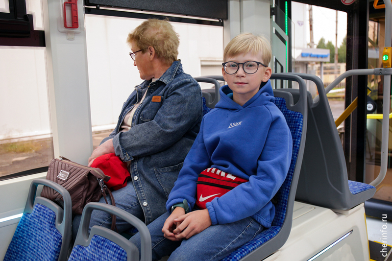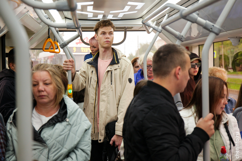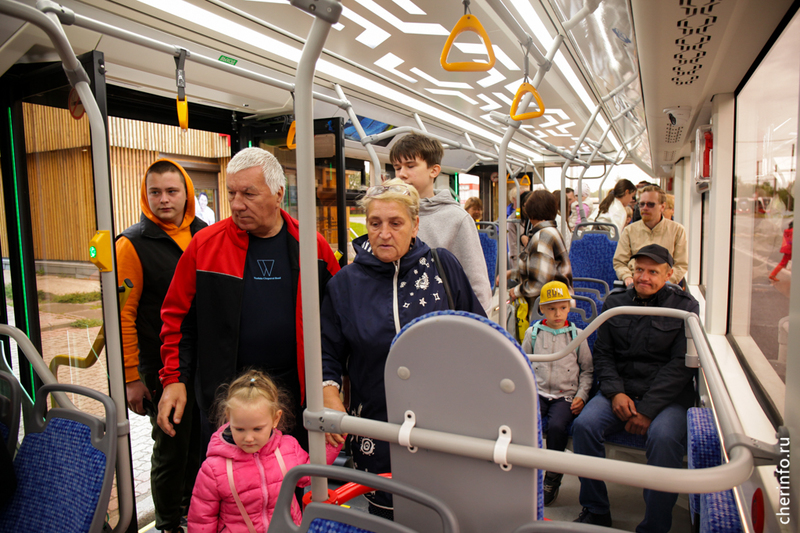 Череповчанин Евгений Романов стал одним из первых пассажиров электробуса: «Было очень интересно. В салоне можно зарядить телефон, классная подсветка и много других фишек».