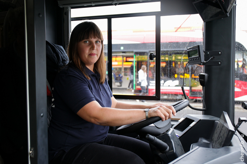 «Я работала на МАЗах, на „Сканиях“. Эта машина необычная: хорошая динамика, коробка автоматическая с электронным блоком управления. В отличие от дизельного мотора, нет толчков при переключении. Вся информация о состоянии электробуса отражается на двух экранах. Внутри и снаружи 12 камер. Мне понравилось. Вчера вечером мне все показали, разобралась за пару часов», — рассказала Александра Белова.