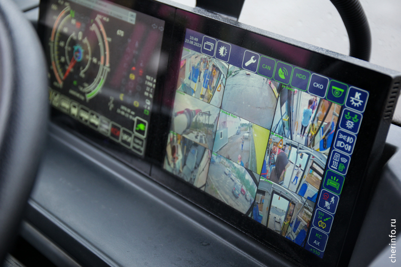 В Череповец пришел электробус в базовой комплектации. В продвинутой устанавливают счетчик пассажиров и систему помощи водителю, которая следит за положением на полосе и расстоянием до другого транспорта.