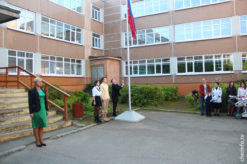 Линейки в школах начались с поднятия флага и исполнения гимна России.