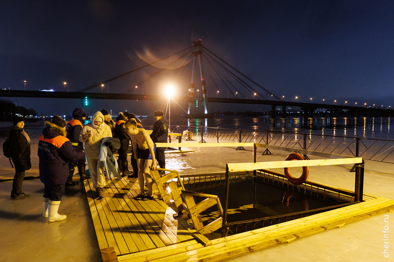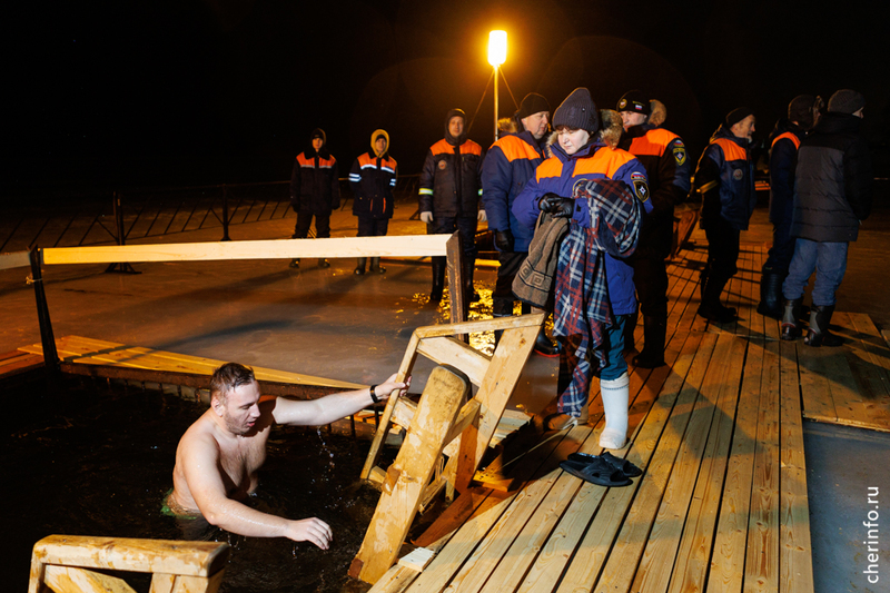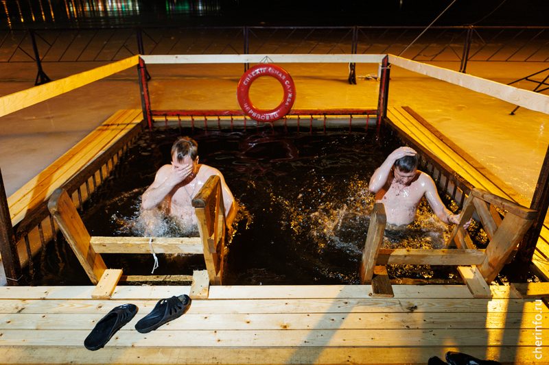 «За ночь искупаться пришли 780 человек. Сегодня утром пришли еще 100 человек. Людей для безопасности запускаем партиями. Все прошло без происшествий. Ждем остальных любителей окунуться в ледяную воду. Сегодня купели открыты до 19 часов», — рассказал cherinfo директор спасательной службы Дмитрий Санакоев.