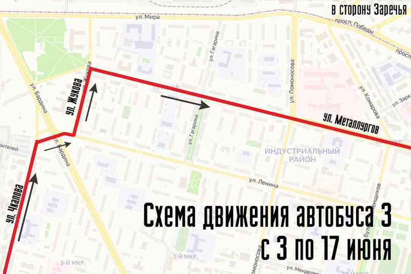 - с 3 по 17 июня автобус № 3 от остановки «ЛМЗ» будет ехать по Ленина, Жукова (односторонний участок в сторону Металлургов), Металлургов и далее по маршруту.