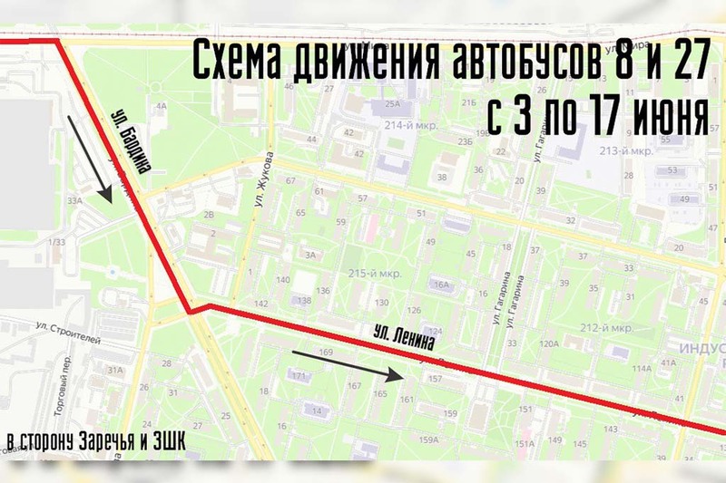 - с 3 по 17 июня автобусы № 8 и 27 от «Доменной» будут ехать по Мира, Бардина, Ленина и далее по маршруту;