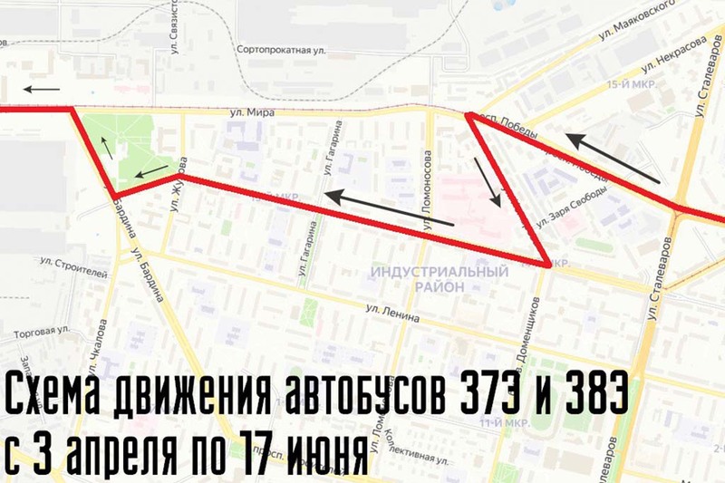 - с 3 апреля по 17 июня автобусы № 37э и 38э к остановке «Доменная» будут ехать по проспекту Победы, Комарова, Металлургов, Бардина и далее по обычному маршруту;