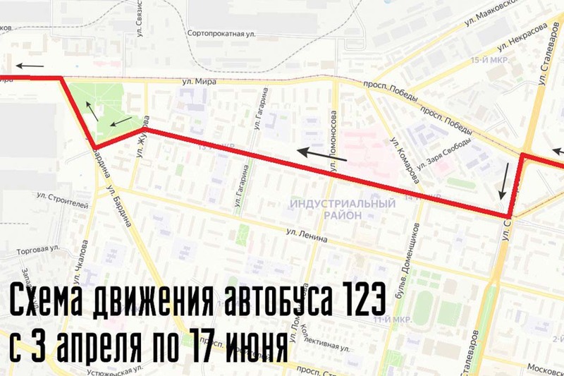 - с 3 апреля по 17 июня автобус № 12э к «Доменной» будет ехать по проспекту Победы, Сталеваров, Металлургов, Бардина и далее по маршруту;