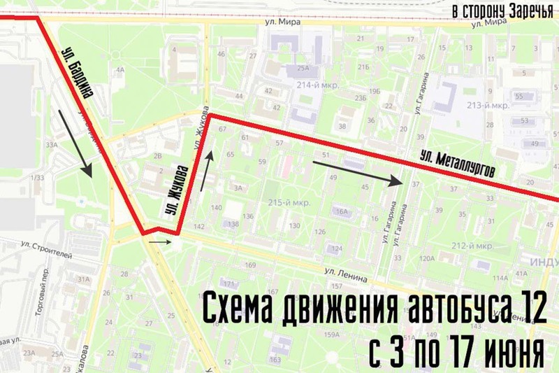 - с 3 по 17 июня автобусы № 12 и 38 от «Доменной» будут ехать по Мира, Бардина, Ленина, Жукова (односторонний участок в сторону Металлургов), далее по маршруту;