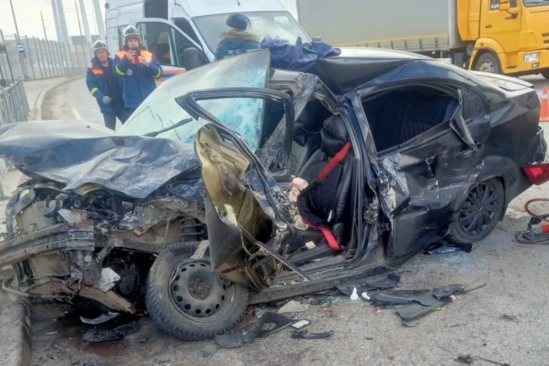 Предварительно, 23-летняя водитель на «Шевроле-Авео» не справилась с управлением и въехала в пассажирский автобус НефАЗ.