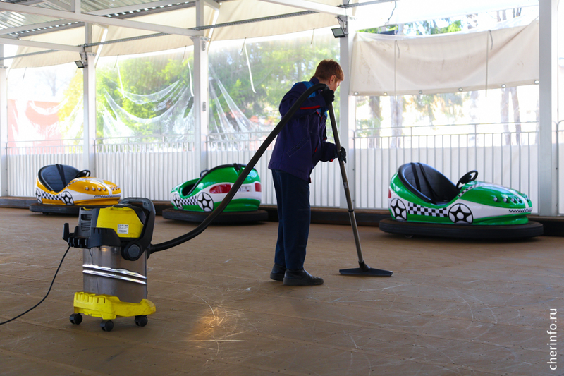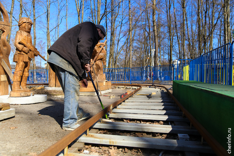 «Парк готовится к открытию. Некоторые аттракционы откроем пораньше. Уже работает автодром, будет открыта „Жемчужина“, „Летающая машина“, „Метро“. На нескольких аттракционах заменили детали. Все ремонты фиксируем в журнале. Затем аттракционы должны пройти аттестацию, после чего получим разрешение на их работу. Еще чистим бассейн с лодками: откачиваем воду, которая скопилась за зиму, уберем оттуда всю листву, зальем новую воду и добавим препараты для поддержания чистоты. Прибираемся в парке ежедневно, скоро организуем большой субботник. Задействуем в уборке подметальные машины. Они распределены по всем трем паркам, хорошо убирают песок и грязь. К сезону подготовим Комсомольский парк и парк 200-летия», — рассказал cherinfo главный инженер культурно-досугового центра «Единение» Сергей Клабуков.