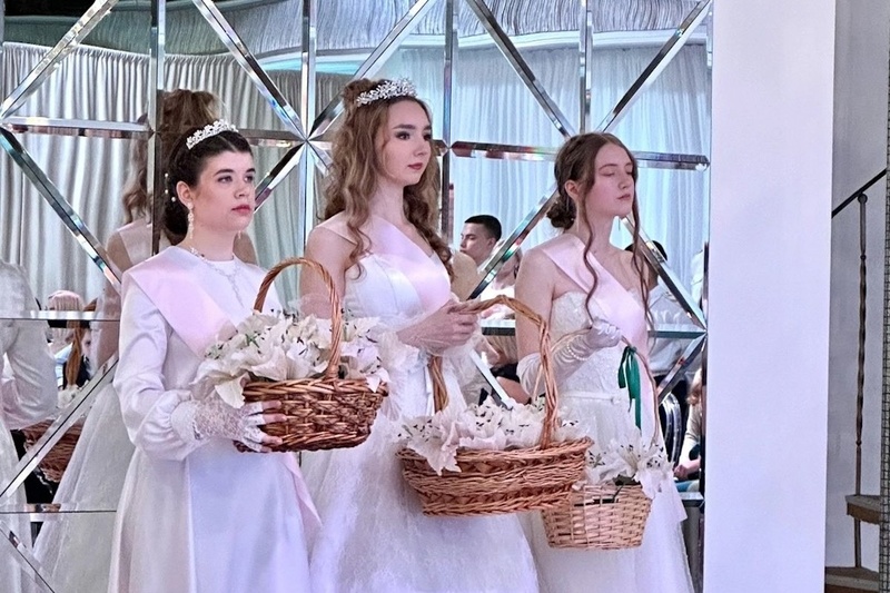 27 апреля в зале торжеств «Платина холл» прошел восьмой весенний благотворительный бал «Русская весна» учениц женской гуманитарной гимназии и курсантов военного университета. Праздник был посвящен Пасхе и 80-летию Победы.