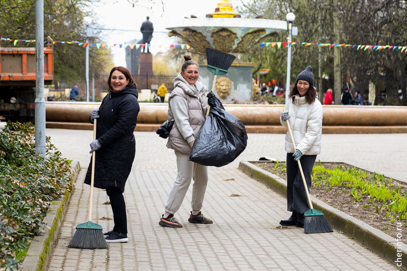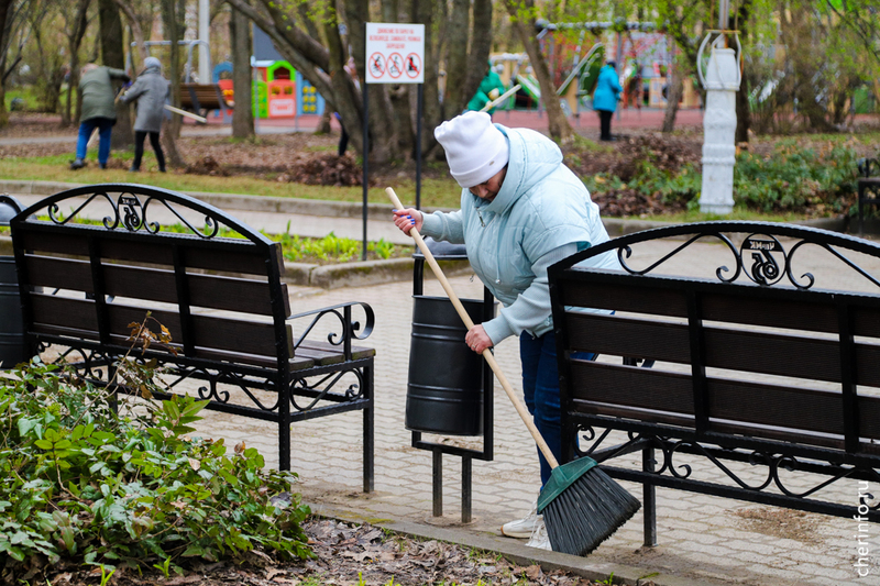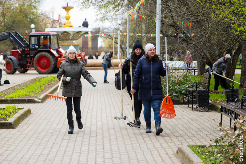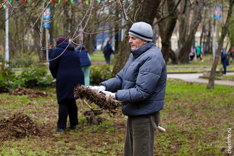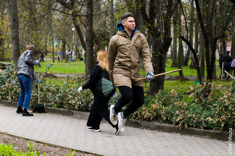«Субботник организовала мэрия. Участвуют около 300 человек. Инвентарь и 16 единиц техники предоставил „Спецавтотранс“. Люди вышли на субботник с удовольствием, потому что хотят видеть парк чистым», — рассказал cherinfo Владислав Дашковский, заместитель начальника департамента ЖКХ.