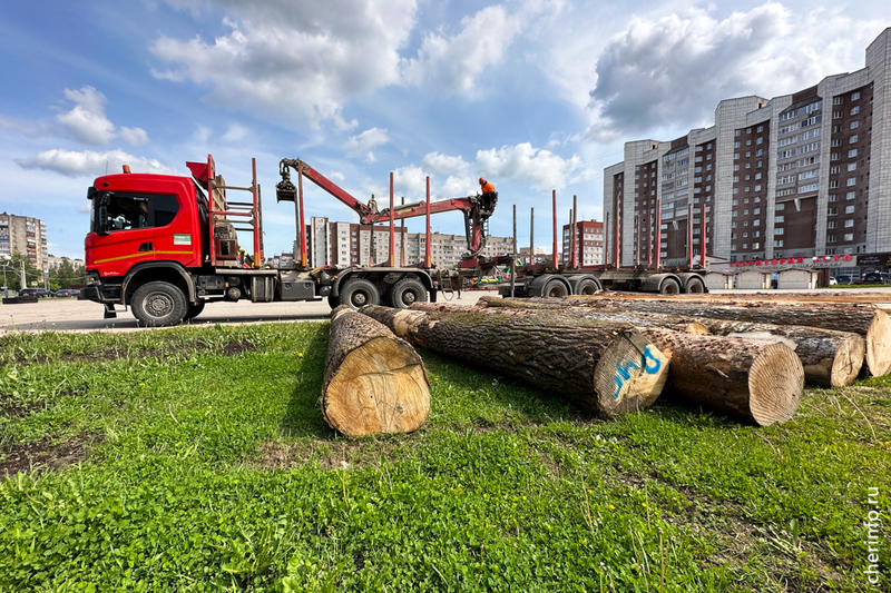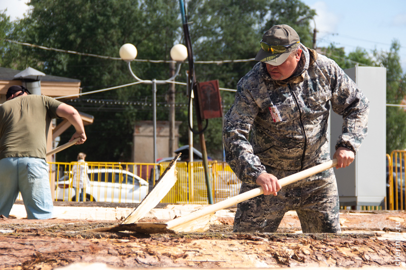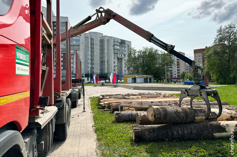 Скульптуры будут делать из сосны, ели и осины. Какое дерево достанется команде, определяли по жеребьевке. Бревна привезли из Пошехонья. Материал доставил партнер фестиваля лесопромышленная компания «Череповецлес».