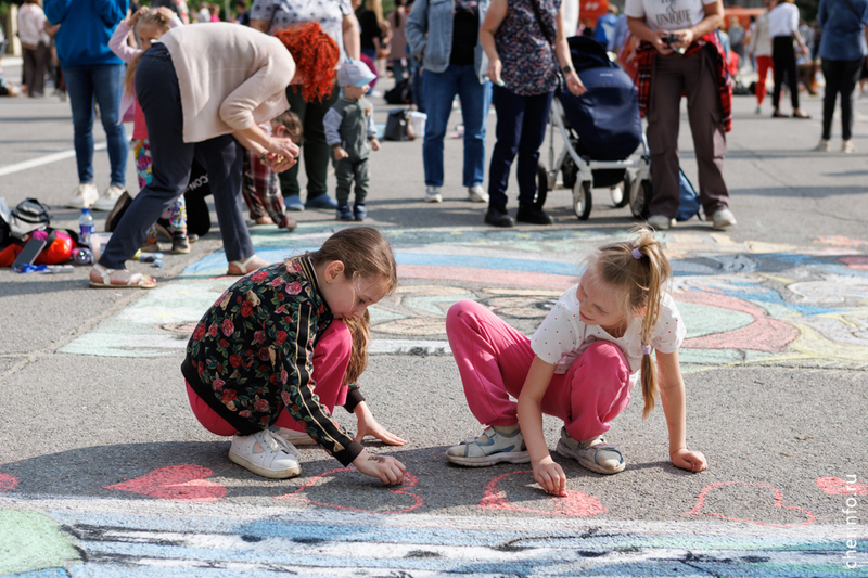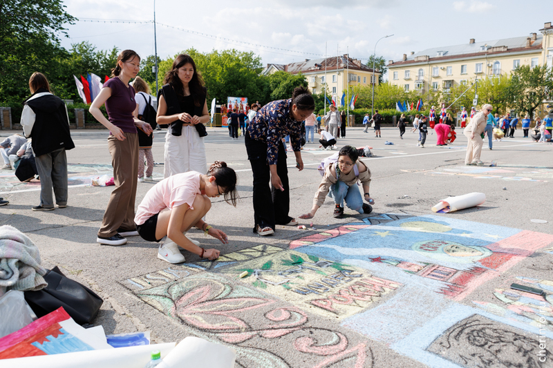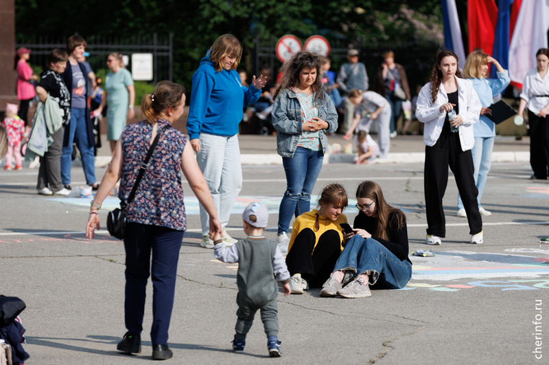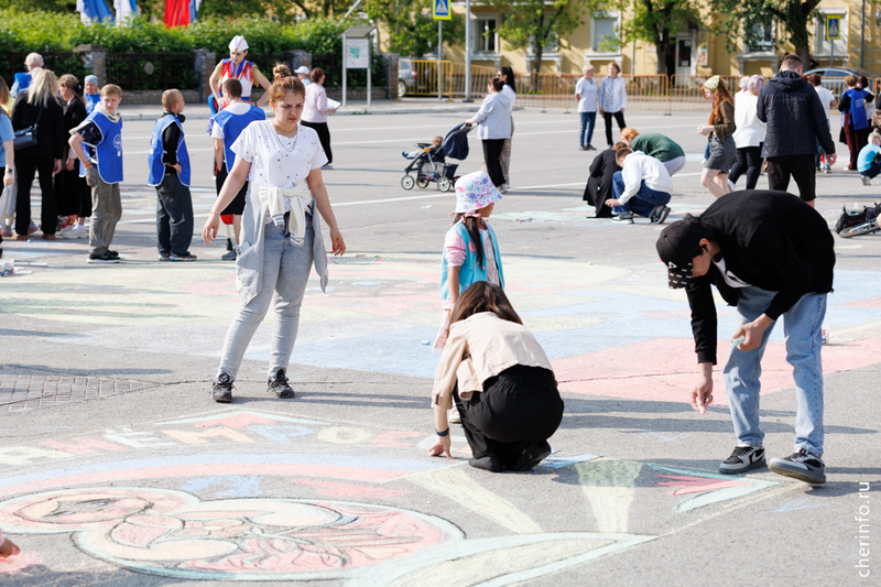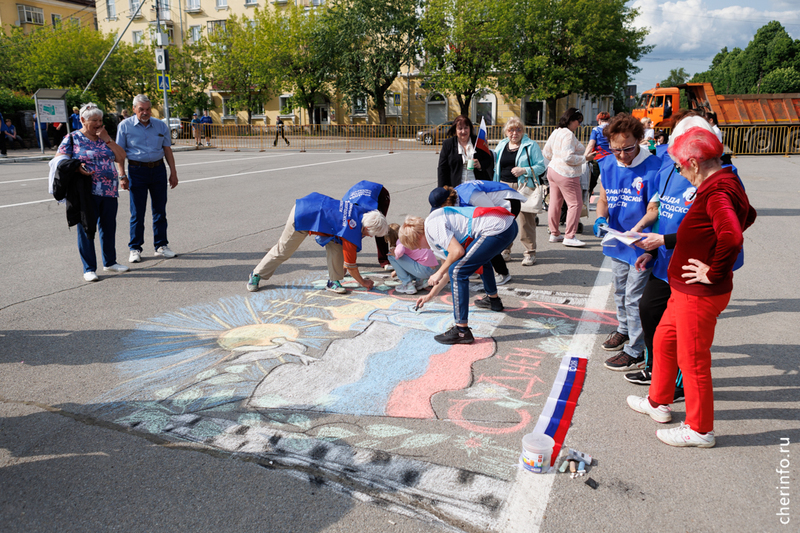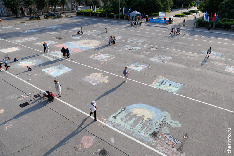 В Череповце больше 230 человек нарисовали на асфальте картины о России