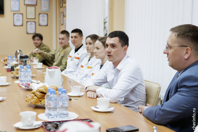 С будущими медиками встретились мэр Череповца Роман Маслов и врип главы города Николай Сальников. Они рассказали студентам о городе, крупных предприятиях, благоустройстве, музеях и достопримечательностях.