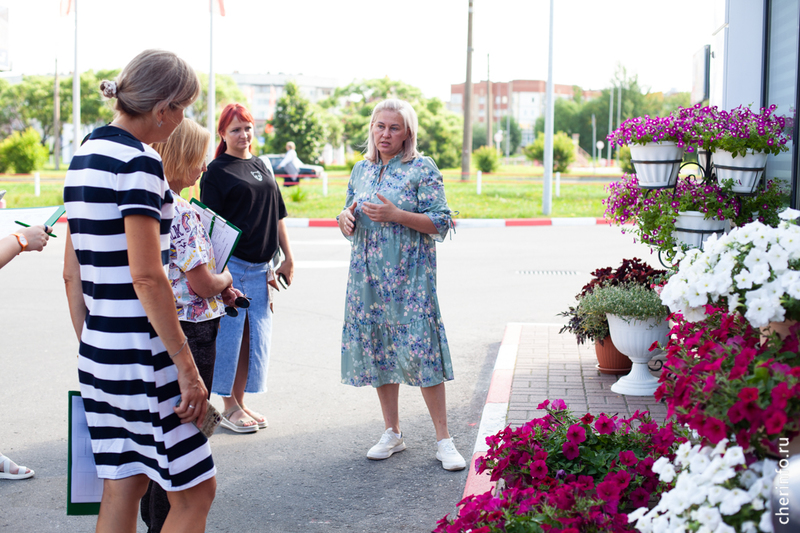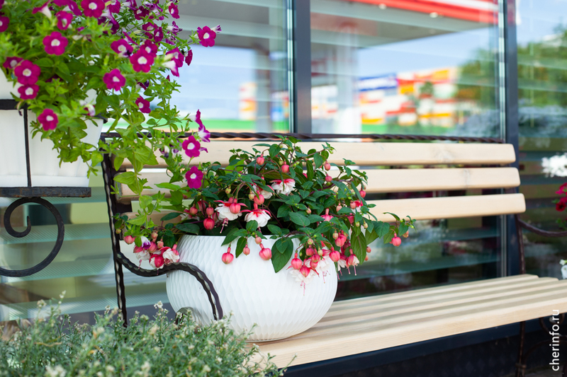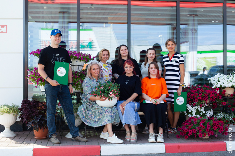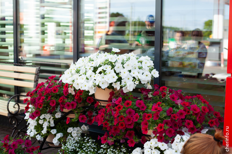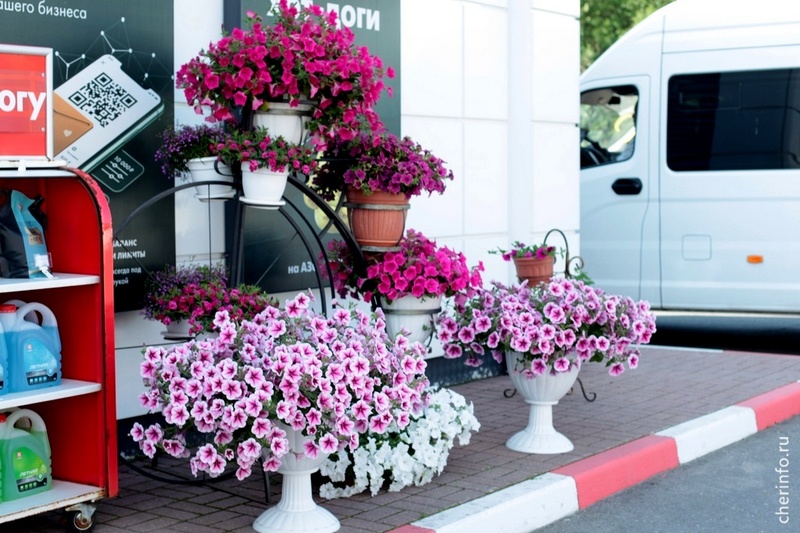 «В конкурсе участвуем с 2017 года, несколько раз занимали первое место в номинациях для предприятий потребрынка. Готовлюсь к конкурсу всегда заранее: сначала делаю эскизы оформления, подбираю семена цветов, чтобы всё между собой сочеталось. В этом году с одной стороны от входа сделали цветочный велосипед, с другой поставили скамейку и украсили ее кашпо с цветами. Посетителям нравится, часто фотографируются на фоне наших композиций», — рассказала cherinfo Надежда Хорзеева.