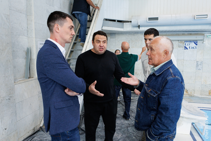 В здании на Сталеваров, 47 отремонтировали чашу бассейна и душевые, осталось доделать раздевалку и тренерскую. В бассейне для спортсменов поставили современные стартовые тумбы, еще повесили новое табло. 13 августа объект посетил мэр Роман Маслов.