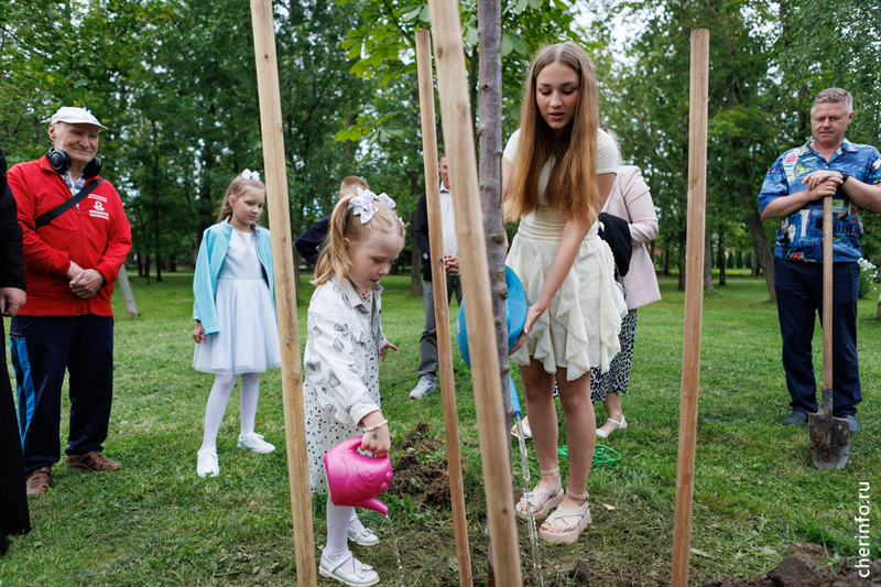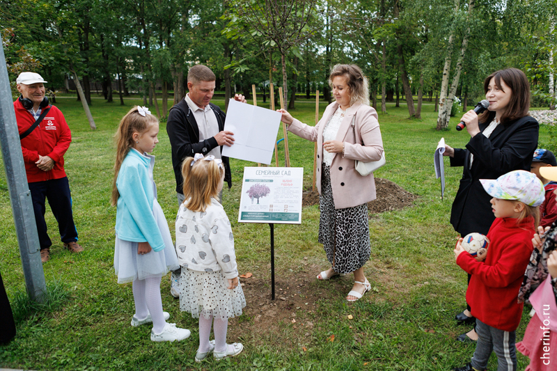 Яблоню посадили череповчане Городишенины, в их семье пятеро детей. Отец Виталий работает инженером, мама Любовь — воспитателем в детском саду.