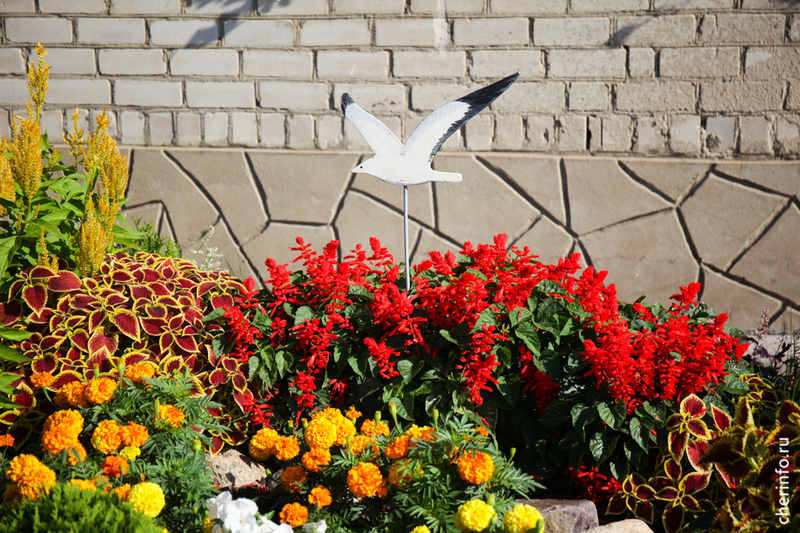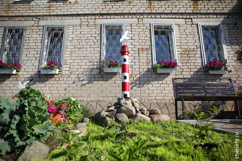 Спасательная служба на Парковой впервые участвует в конкурсе «Цветущий город». В этом году у здания спасателей появились клумбы, скамейки. Еще здесь поставили якорь, маяк, штурвал и портреты ветеранов-моряков Череповца и района.