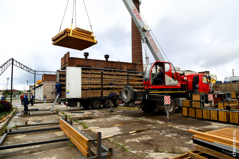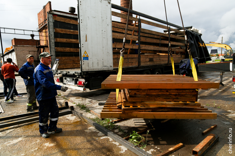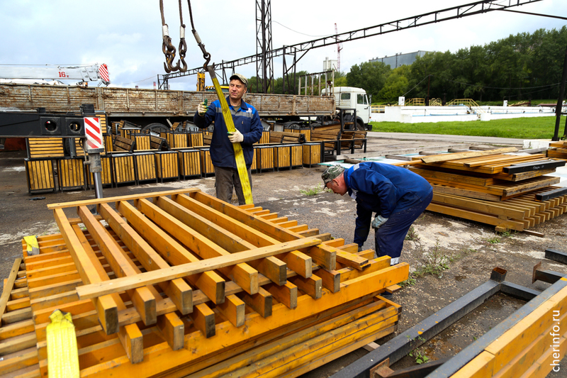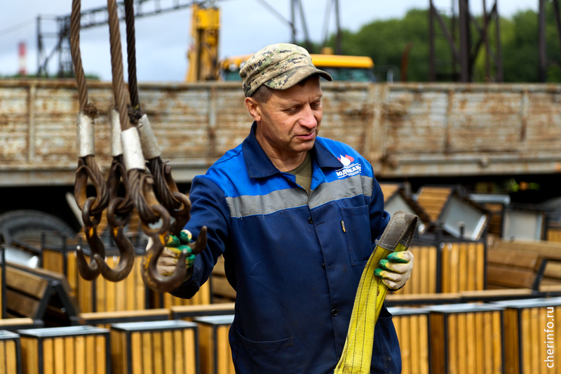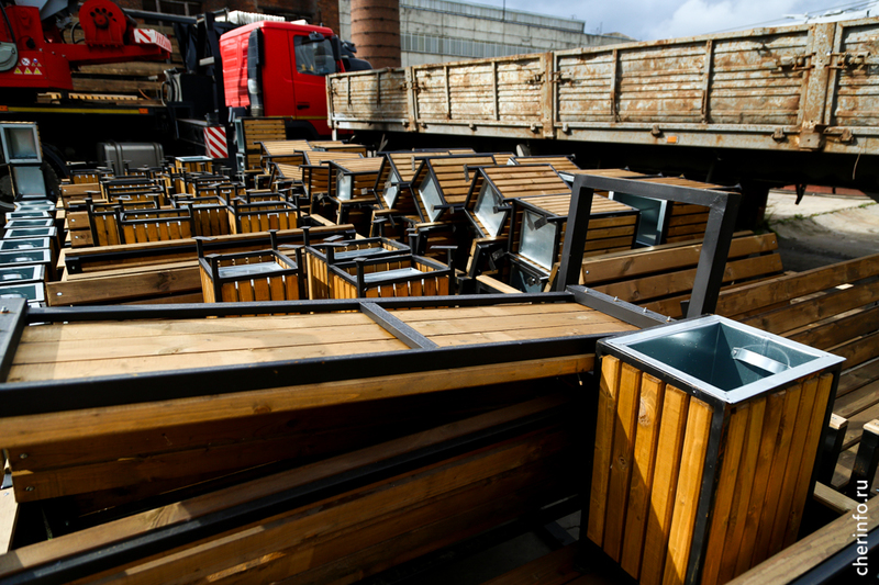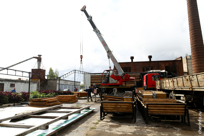 Подшефному городу Череповец передал павильоны из деревянных ламелей. На каждой остановке разместят герб Череповца и Алчевска.