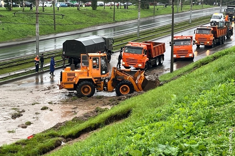 В Череповце сегодня выпало 67% от месячной нормы осадков. Из-за ливня на проспекте Победы под железнодорожным мостом в районе Судостроительной сошел оползень. Проезд для транспорта на этом участке закрыт, автобусы идут только по направлению в Заречье через улицу Красную.