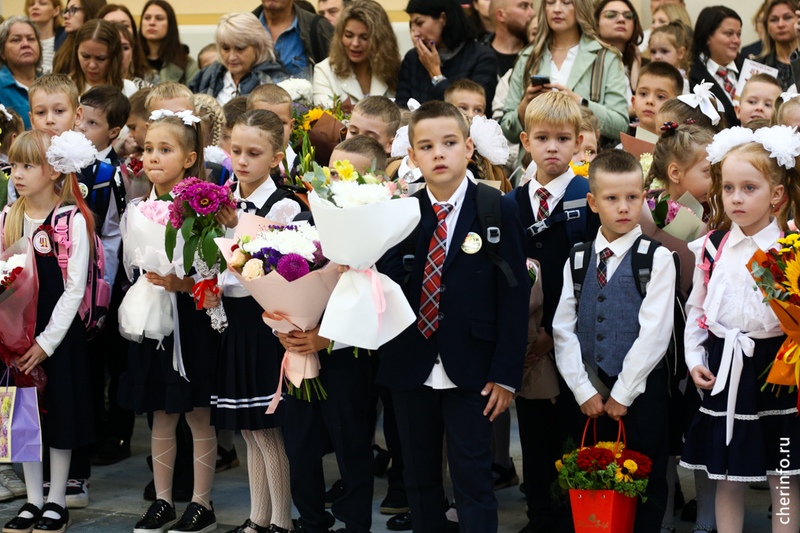 Сегодня для учеников первых, десятых и одиннадцатых классов провели линейку на первом этаже здания на Ленинградской, 33. Торжество началось с выноса флага и исполнения гимна России. Школьников и педагогов с началом учебного года поздравили директор Школы русской культуры № 41 Альбина Сорокина и епископ Череповецкий и Белозерский Игнатий.