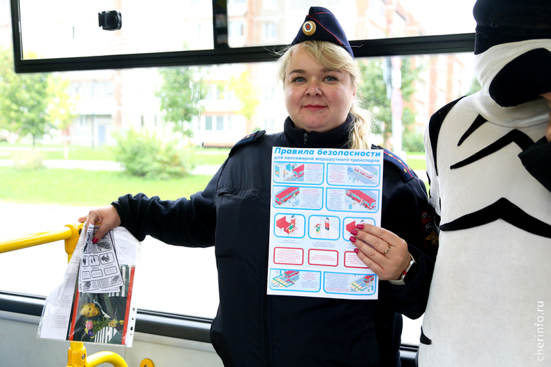«Напомнили детям, как нужно заходить и выходить из общественного транспорта, что нужно обязательно держаться за поручни. Школьникам в автобусах раздали памятки, подарили светоотражающие брелоки и воздушные шарики. Также проводим инструктаж для водителей. Акцию „Автобус безопасности“ проводим два раза в год: ко Дню защиты детей и Дню знаний», — рассказала cherinfo советник директора автоколонны № 1456 Алёна Екимовская.