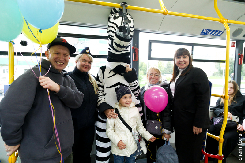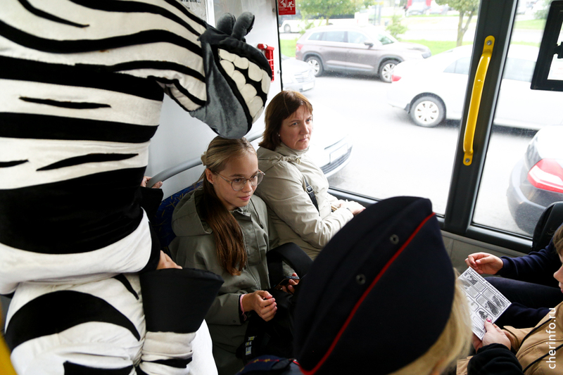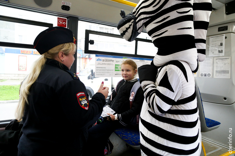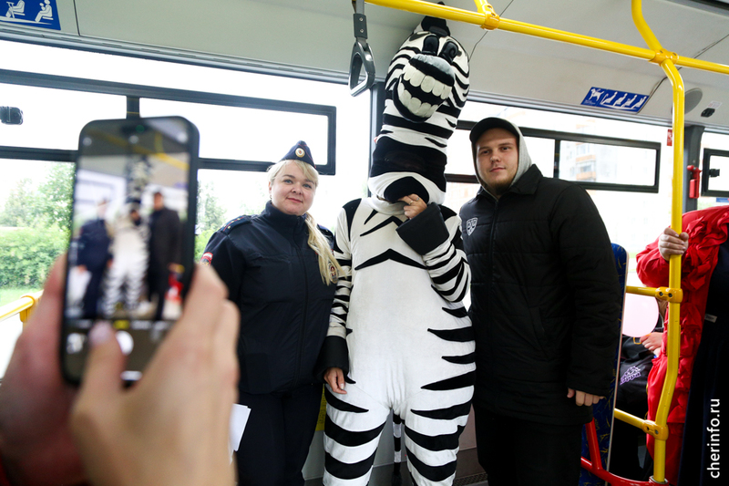 В Череповце зебра-полицейский напомнила детям о правилах поведения в автобусах и трамваях