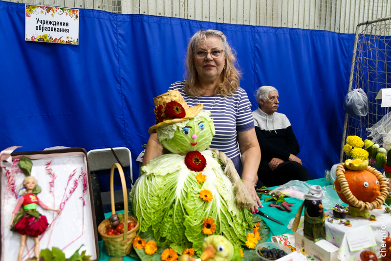 «В этой выставке я принимаю участие с 2019 года. Сегодня мы пришли всем коллективом совета ветеранов образования. У меня в этом году вырос хороший урожай капусты. Сразу пришла мысль о том, чтобы сделать купчиху. К ней добавила несколько деталей — косу, корзинку с урожаем и шляпку», — поделилась Татьяна Крупина.