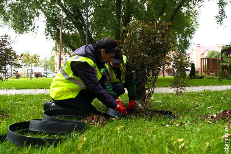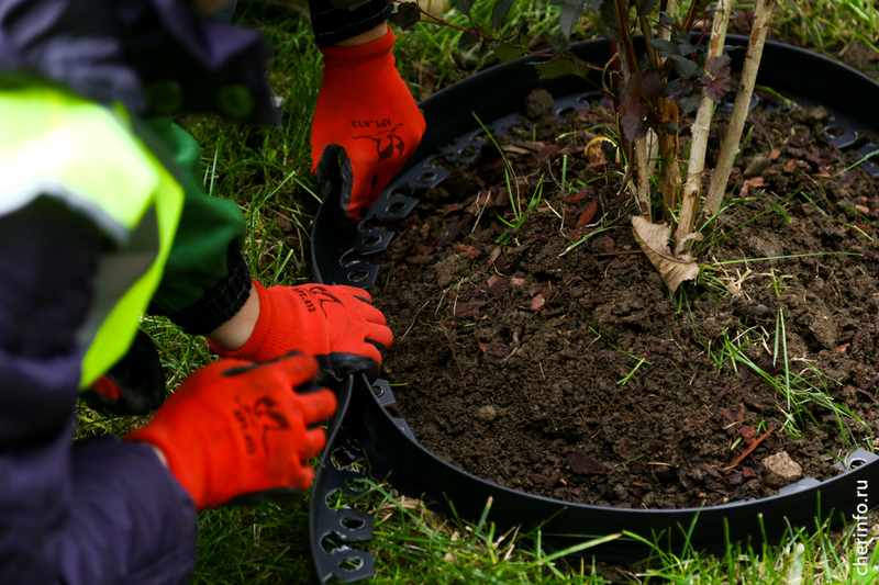 «Это нужно для того, чтобы приствольный круг был чистым, на него не заползал газон, и растениям больше доставалось питания, которое может забрать трава. Поэтому сначала чистим приствольный круг, освобождаем от травы и сорняков и огораживаем бордюром. Позже замульчируем всё корой, чтобы сохранить растениям влагу и тепло. Кроме того, будет легче косить газон: косилка проходит возле бордюра и не задевает растения, потому что пластик достаточно устойчив. И эстетический вид никто не отменял: бордюры оформлены в определенной форме, что добавляет ухоженности скверу. Большие деревья не трогаем, потому что у них уже сформированы приствольные круги и крепкая корневая система», — рассказала cherinfo мастер «Горзеленстроя» Ольга Щеголева.