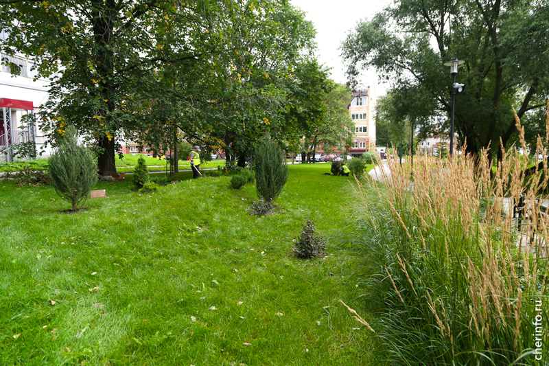 В сквере у «девочки с рулетом» кустарники защитят от газонокосилок