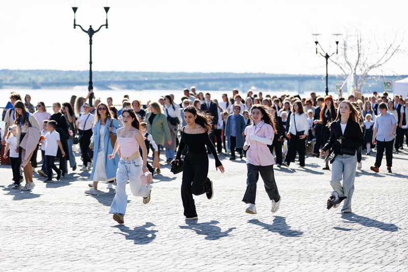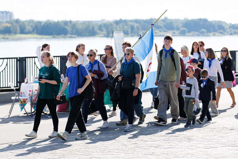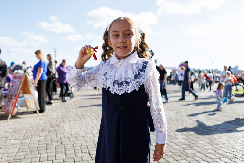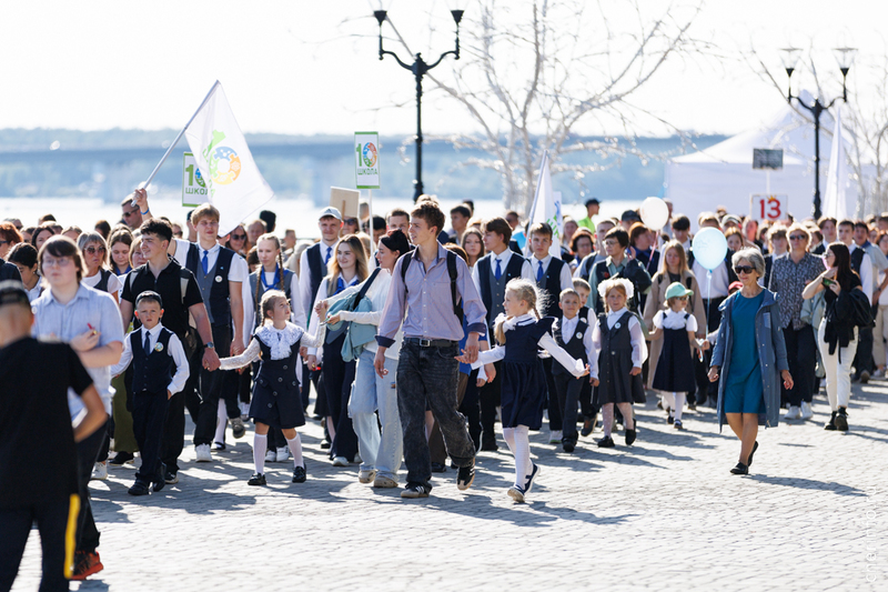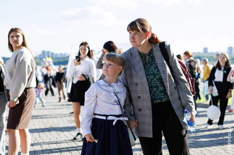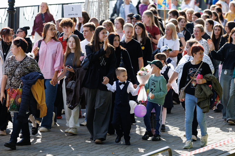 Ученики первых кассов прошли в сопровождении старшеклассников, учителей и родителей. Колонна двигалась от Октябрьской до Соборной набережной. Праздничное шествие было приурочено ко Дню знаний.