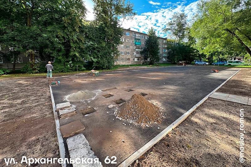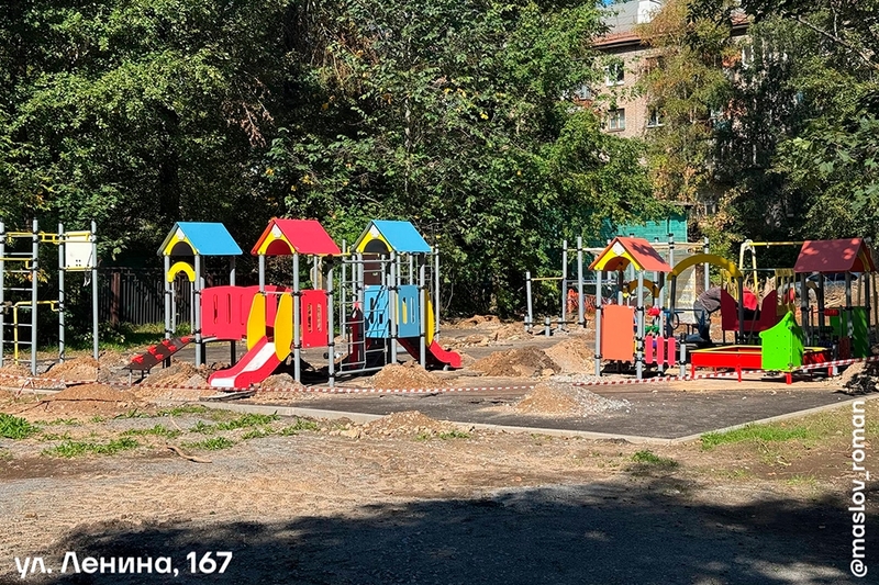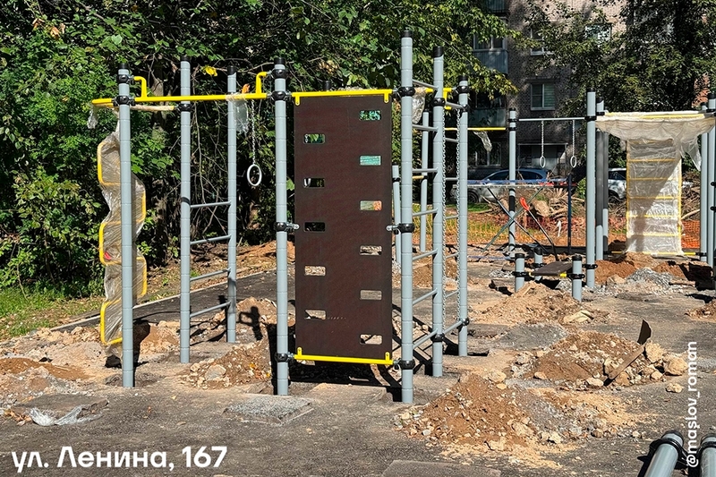 На девяти комбинированных площадках идут строительно-монтажные работы, на семи из них сделано асфальтобетонное основание, во дворе на Ленина, 167 подрядчик приступил к монтажу игрового оборудования.