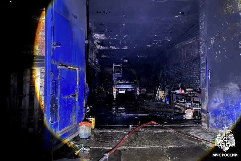 На тушение выехали 19 сотрудников МЧС на пяти единицах техники. Огонь удалось остановить на площади в 172 квадратных метра. Повреждены внутренняя отделка гаражей и стоявшие в одном из них два грузовых автомобиля.