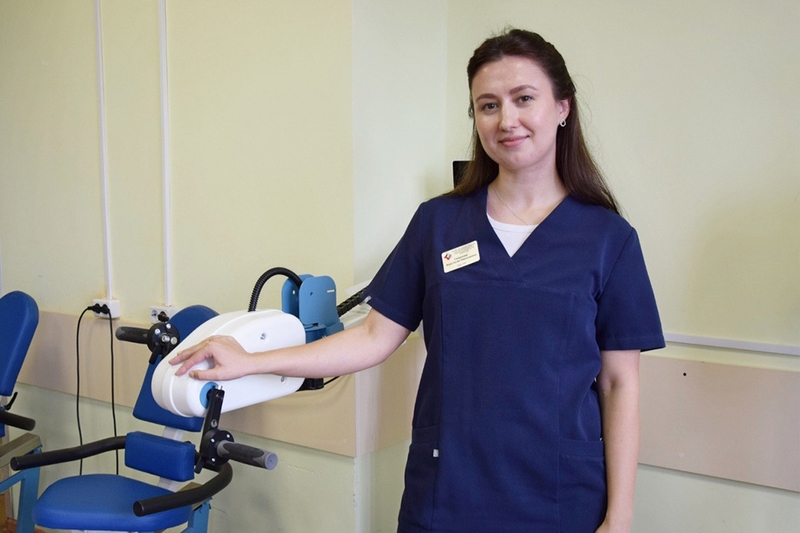 Врач по лечебной физкультуре отделения ранней реабилитации Анастасия Смирнова родилась в Белозерске. Окончила Ярославский медуниверситет. Три года работала терапевтом в Белозерске и Череповце, затем прошла ординатуру по ЛФК и спортивной медицине. Она работает с пациентами, перенесшими инсульт, учит их ходить, держать ложку. Сейчас Анастасия оканчивает обучение по смежной специальности — «врач физической и реабилитационной медицины».