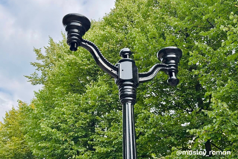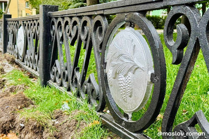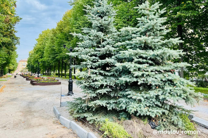 «Ограждение по периметру вымыто и покрашено, все фонари отчищены пескоструем и тоже покрашены. Лавочки и урны увезли на базу — их реконструируют и перекрасят. Клумбы переделаны в клумбы-лавочки с красивым деревянным настилом. Сейчас подрядчик укладывает плитку и готовит площадки под высадку больших голубых елей», — заявил Роман Маслов.