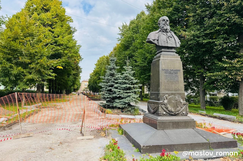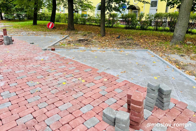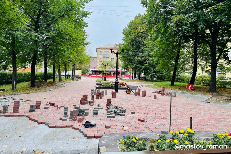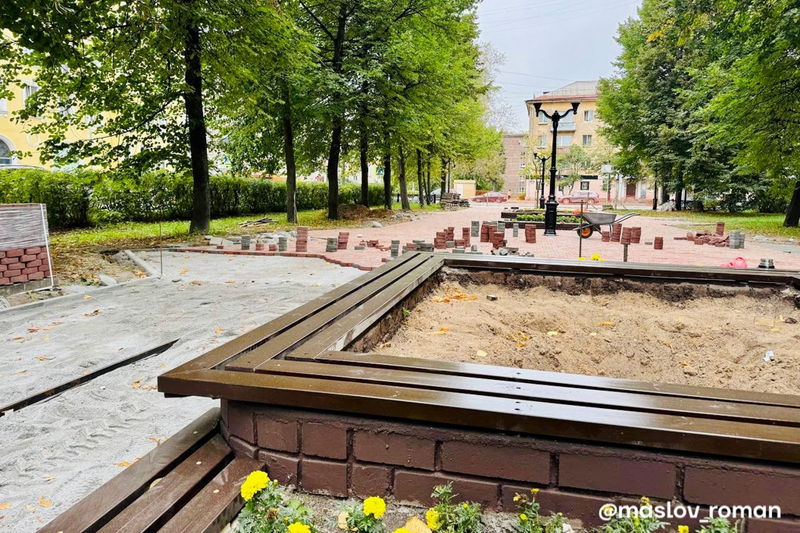 Об этом сообщил мэр Роман Маслов. Сейчас в сквере устанавливают новые поребрики.