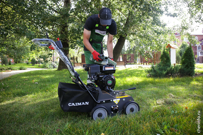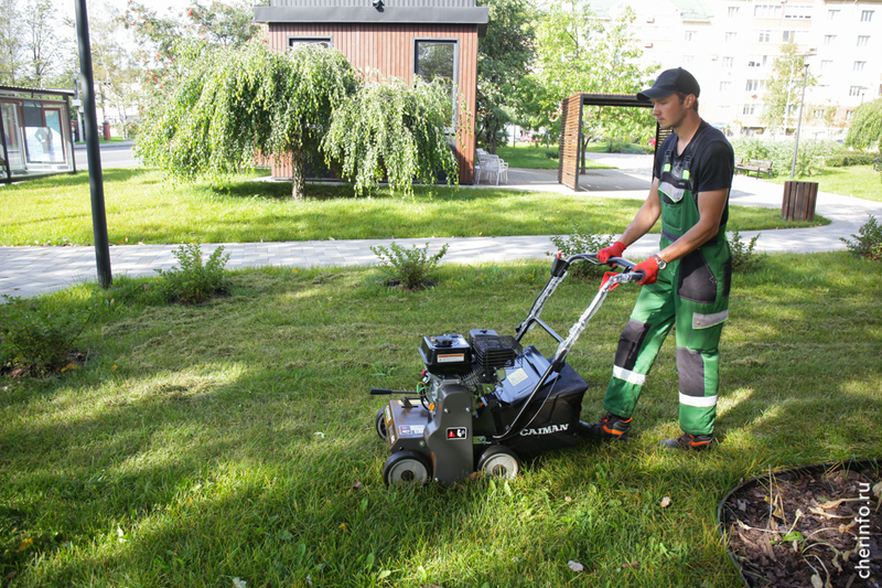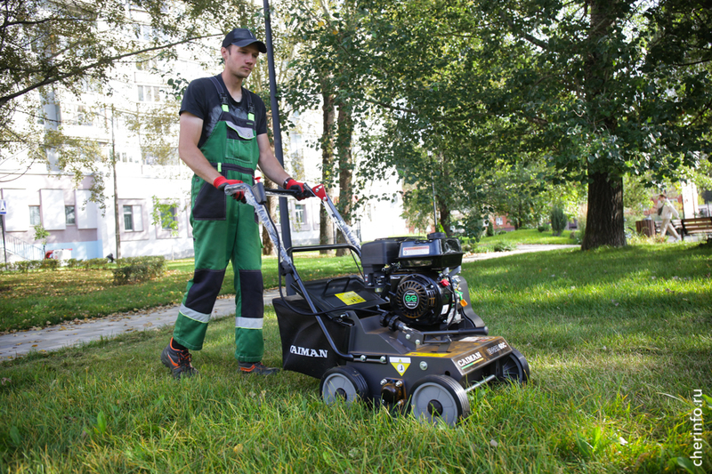 «Пока у нас одно такое устройство. Скарификатор нужен для ухода за газоном, профилактики газонных болезней, которые появляются в конце лета, например ржавчина. Обработаем газоны, которые пострадали от жары, проведем обработку фунгицидами, что поможет полечить газоны. Весной работы продолжим для профилактики. У скарификатора внизу лезвие, которое срезает плохую траву, и прокалывает землю. При этом формируется плотная корневая система, а попадающий воздух помогает проветривать газон: как и любое растение, он нуждается в кислороде. После процедуры газоны приобретут насыщенный зеленый цвет. Будем проводить две-три процедуры в сезон, в том числе с обработкой. Работать нужно в сухую погоду. На обычных газонах скарификатор не нужен, пока идет формирование корневой основы», — рассказала cherinfo директор «Горзеленстроя» Ирина Аппалонова.