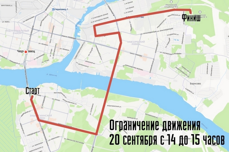 В этот же день с 14 до 15 часов пройдет мотопробег. Колонна поедет по Раахе, Шекснинскому проспекту, Южному шоссе, Архангельской, Краснодонцев до пятого кладбища. В это время будет ограничено движение по маршруту мотоциклистов.