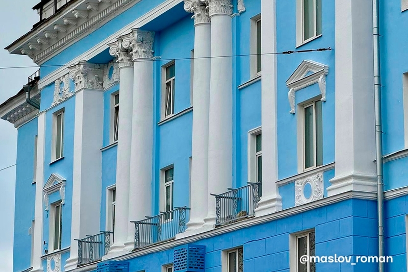 «Это здание 1955 года постройки, выполненное в стиле сталинского ампира. Работы проходят по программе ремонта фасадов домов губернатора Георгий Филимонов», — заявил мэр Роман Маслов.