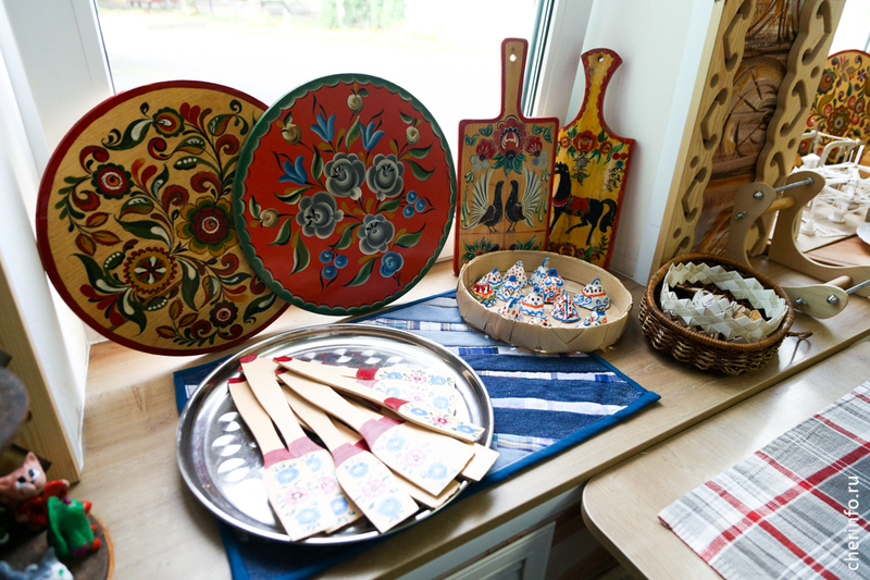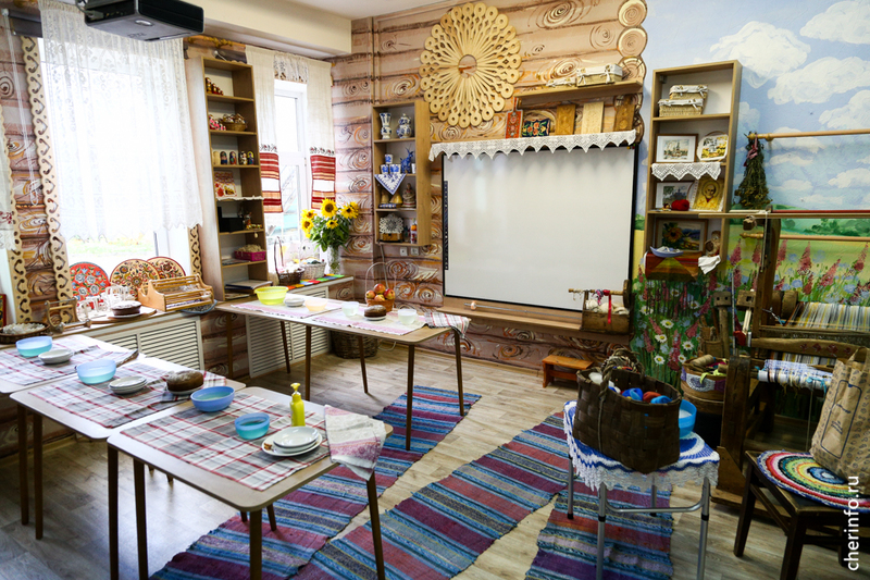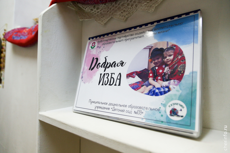 «В музее „Добрая изба“ есть предметы русского быта, русская печь. Мечтали сделать мастерскую в стиле русской избы, чтобы были деревянные стены и мебель, старинные вещи. В музее увидели с детьми расписанный поднос — можем повторить роспись в нашей мастерской. Знакомим детей с народной куклой, лоскутным шитьем, лепим из глины кулоны, подвески, колокольчики. Из бересты плетем браслеты, из шнуров — ключницы, брелоки. С дизайнером придумали удобные полки, столы-трансформеры. Сотрудники сада расписали стены под деревянный бревенчатый дом», — рассказала Ольга Цветкова, заведующая детским садом № 109.
