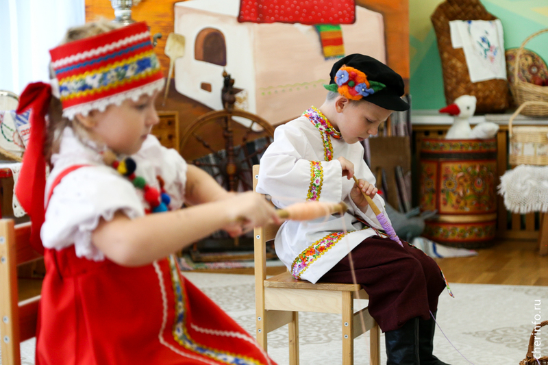 Дети учатся плести из бересты, лепить из глины, валять из шерсти браслеты и кулоны, делать народных кукол из ниток и соломы, знакомятся с художественной росписью и чеканкой. Еще здесь есть настоящий ткацкий станок, на котором воспитатели показывают детям, как ткать половички.