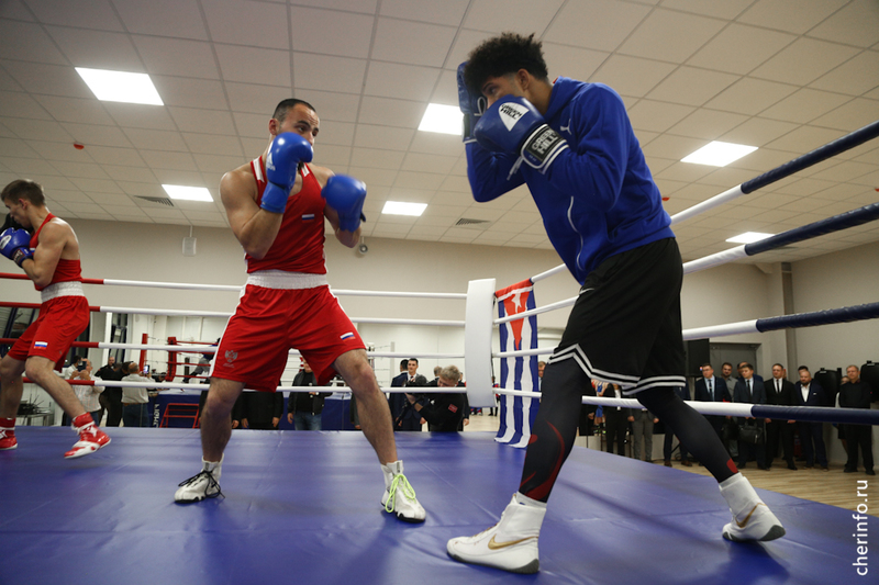 Показательный спарринг прошел 29 сентября. Два кубинских боксера Виктор Мануэль Перес Ариас и Абель Аниер Посадима Лима провели тренировочные бои с череповецкими спортсменами.
