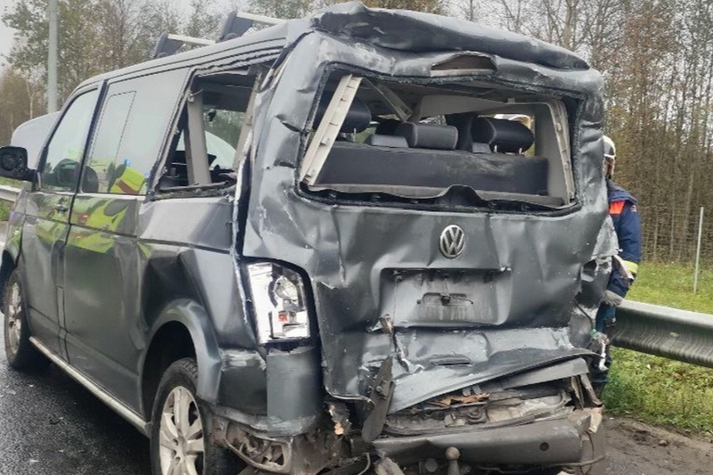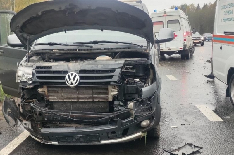 Авария произошла сегодня в 12:49 на 107-м километре трассы А-114. По предварительной информации, 53-летний водитель, двигаясь по крайней правой полосе со стороны Санкт-Петербурга в сторону Вологды на автомобиле «Донфенг» с полуприцепом, врезался в стоявший на светофоре попутный «Фольксваген-Мультивен».