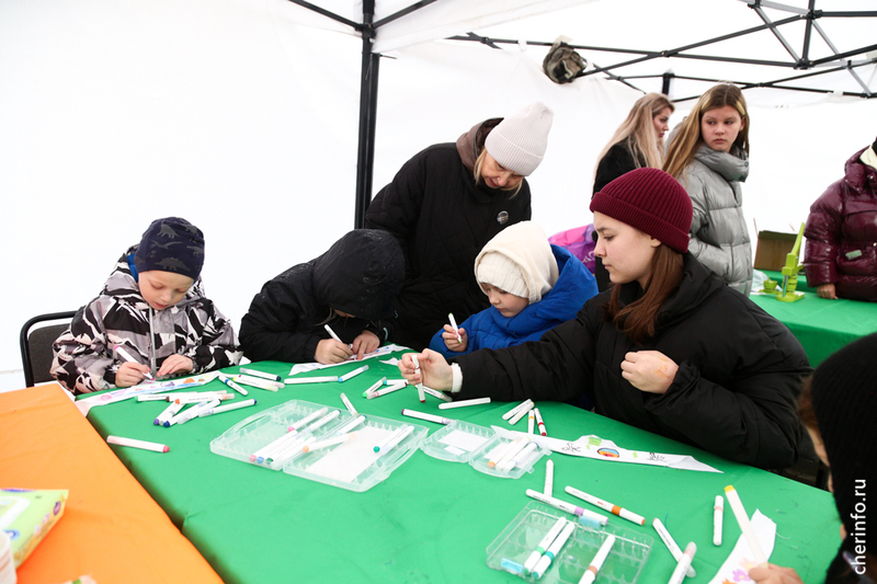 На площади были оформлены фотозоны, работала ярмарка с продукцией череповецких мастеров и ремесленников, свежей выпечкой и горячим чаем.