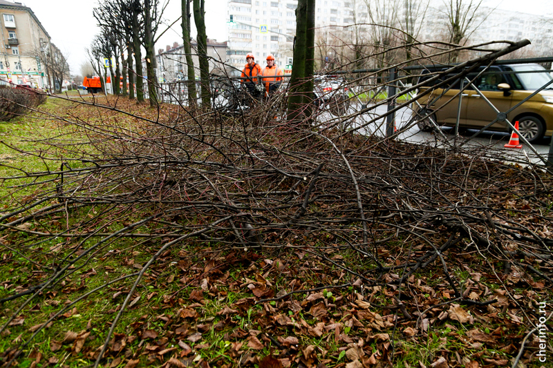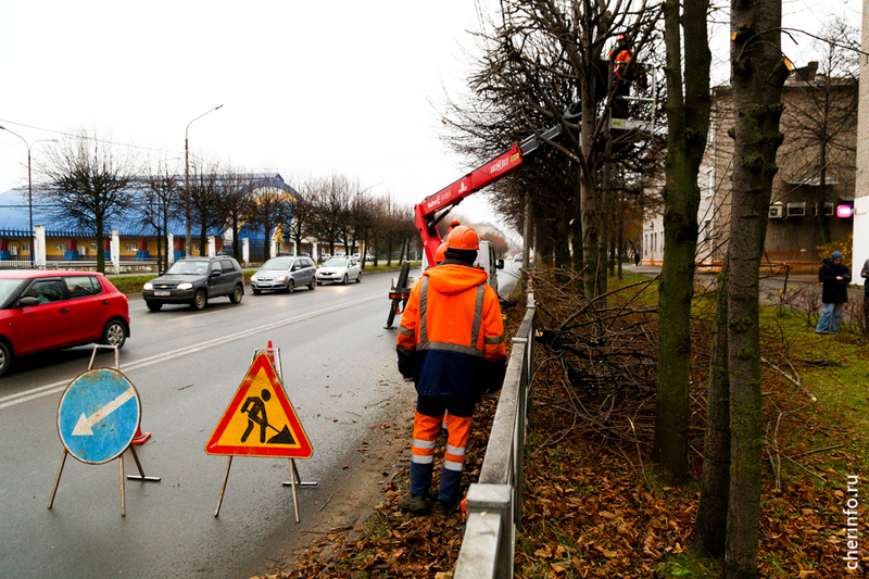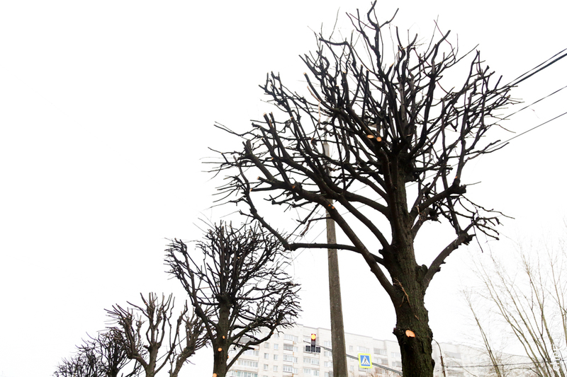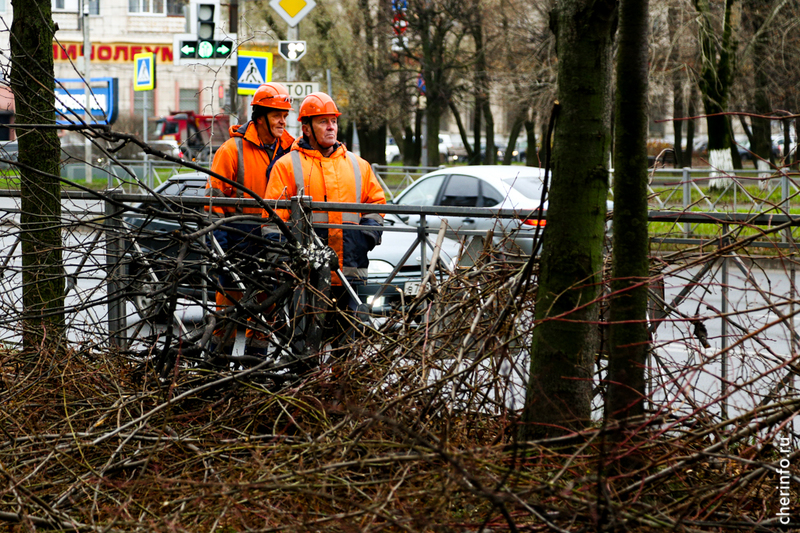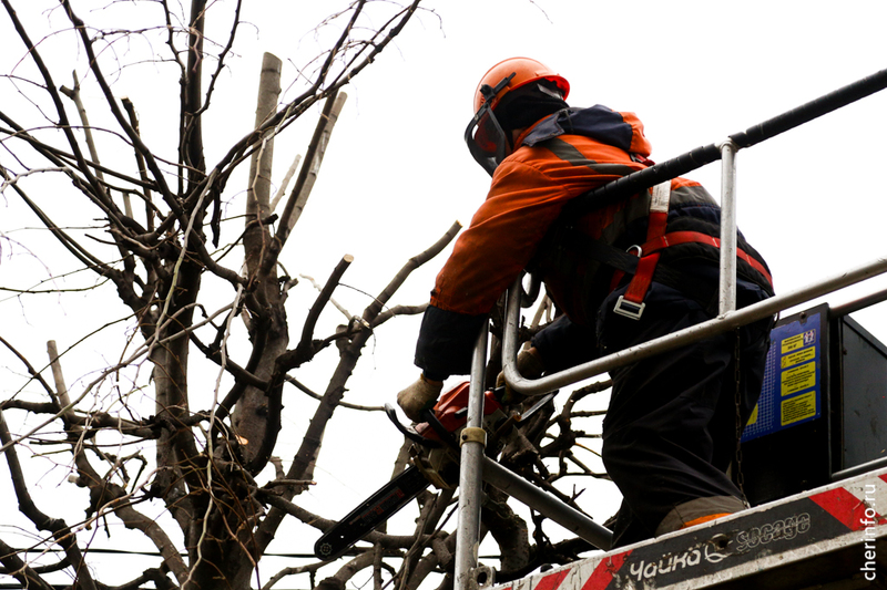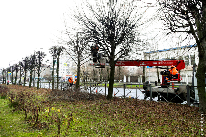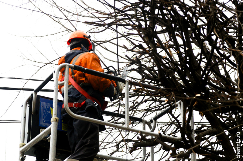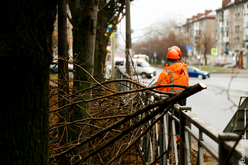 «У дерева убираем приросты двух-трех лет. Крона уменьшается, потом почки начинают активизироваться, и весной крона становится гуще, компактнее, при этом не мешает проводам, не закрывает освещение и дорожные знаки. Были жалобы от жителей на освещение на Ленина: в темное время из-за листвы свет не проникает на тротуар. Деревья в этом месте в последний раз стригли в 2020—2021 годах, после этого крона стала шарообразной. После нашей обрезки точно так же крона будет шарообразной. Здесь в основном растут липы, есть еще клены остролистные, тополя. В среднем за сезон успеваем обрезать 250—300 деревьев. Традиционно и учитывая физиологические особенности растений, начинаем работать после опадения листвы и до набухания почек: с середины ноября до 15 марта», — рассказал cherinfo начальник службы обеспечения безопасности зеленых насаждений «Спецавтотранса» Всеволод Селезнёв.