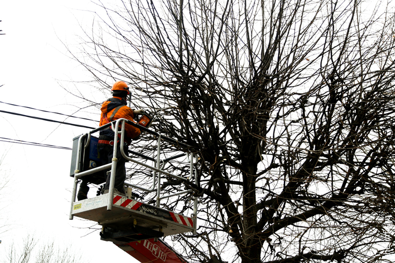 Сегодня сотрудники «Спецавтотранса» начали обрезать деревья на Ленина, 92 Б. Работы пройдут на участке от Сталеваров до Ломоносова, здесь около 180 деревьев. Ветки обрезают бензопилой, задействуют автовышку. Все крупные срезы обрабатывают садовым варом.