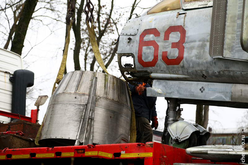 «Это первый военный советский самолет с изменяемой геометрией крыла. С вооружения снят в 1975 году. Самолет демилитаризованный, всё оборудование изъято, это требование Минобороны. Планер самолета весит около 16 тонн, устанавливать будем краном. Под него сделали отдельную площадку, где будут стоять два самолета. Мы хотим представить линейку МиГов в парке», — рассказал инженер Череповецкого музейного объединения Игорь Комаров.