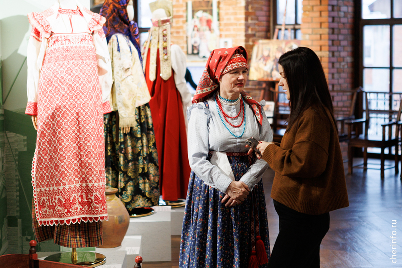 «Здесь костюмы Вологодской области и частично Каргополья. Есть исторические и пошитые современными мастерами. Выставили никольский, тарногский костюмы, есть зимний костюм, один мужской костюм. Мы взяли праздничную мужскую рубашку, такие носили везде в нашей местности», — поделился коллекционер Валерий Гунбин.