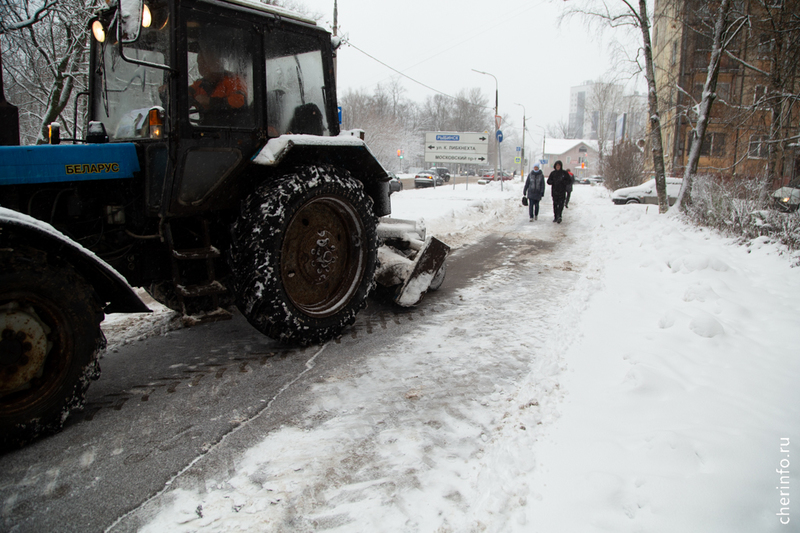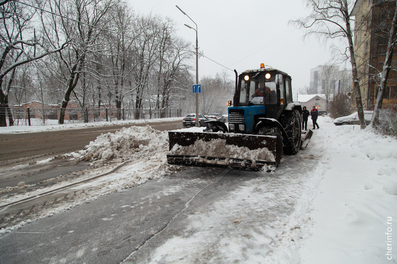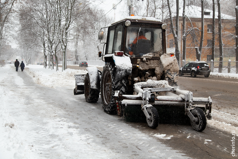 В Череповце на круглосуточную уборку снега вывели 45 спецмашин