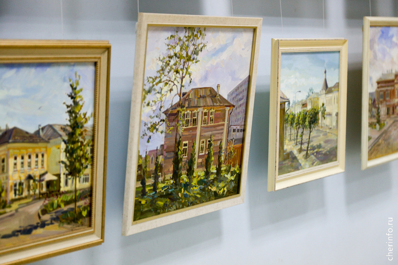 «Я выбрала работы именно о Череповце. Город стал почти родным, живу здесь около 27 лет с момента поступления на худграф ЧГУ. Тогда писала виды из окна во время учёбы. Сейчас выхожу на улицу и пишу старинные здания. Есть целая серия на Советском проспекте, которая создана на основе книги Эльвиры Риммер „Прогулки по Воскресенскому проспекту“. Было интересно работать над этим материалом с живописной стороны: как выглядят здания в современное время, какие-то отреставрированы, некоторые частично перестроены. Есть и промышленные пейзажи, современные виды: торговые центры, Архангельский мост», — рассказала cherinfo Ирина Гуляйкина.